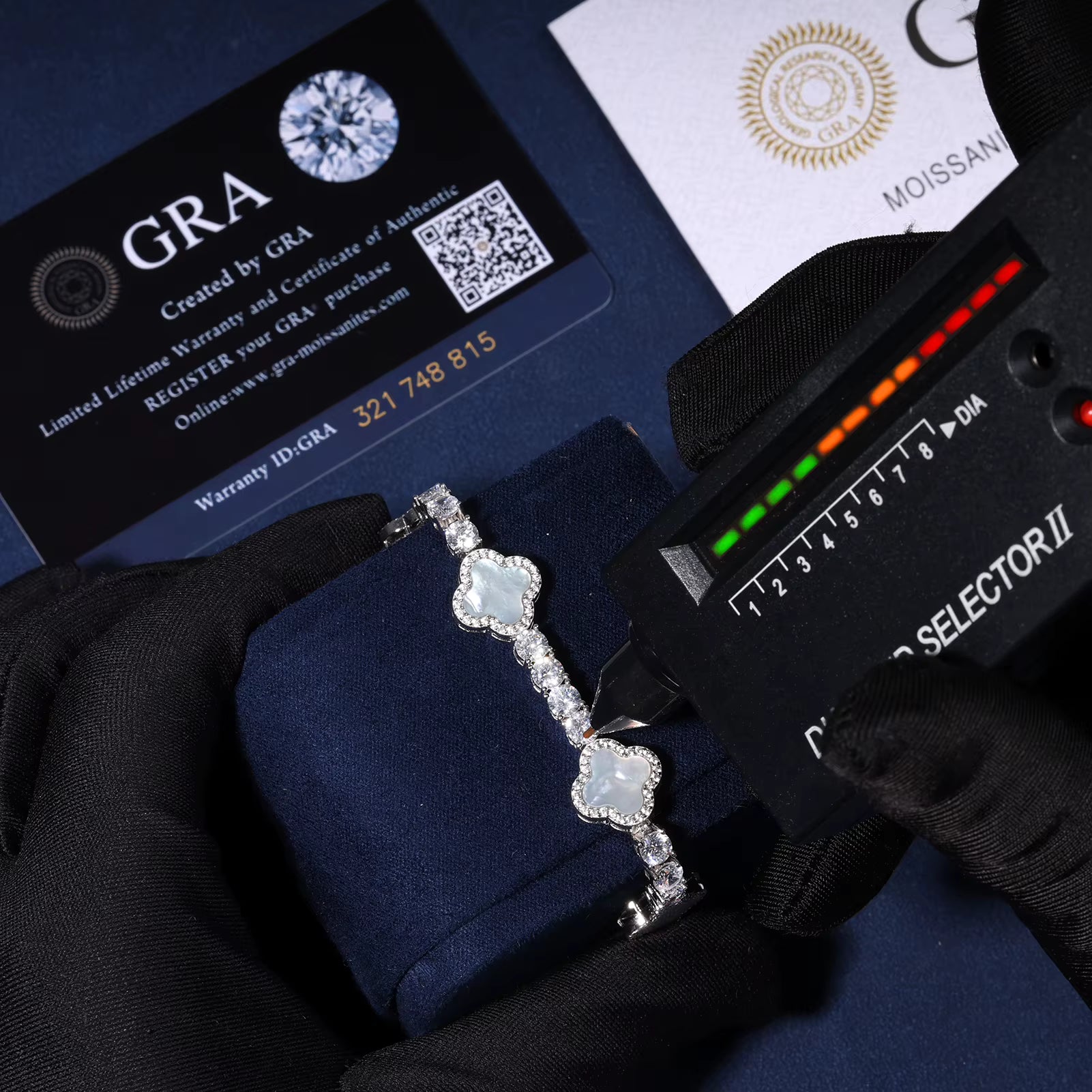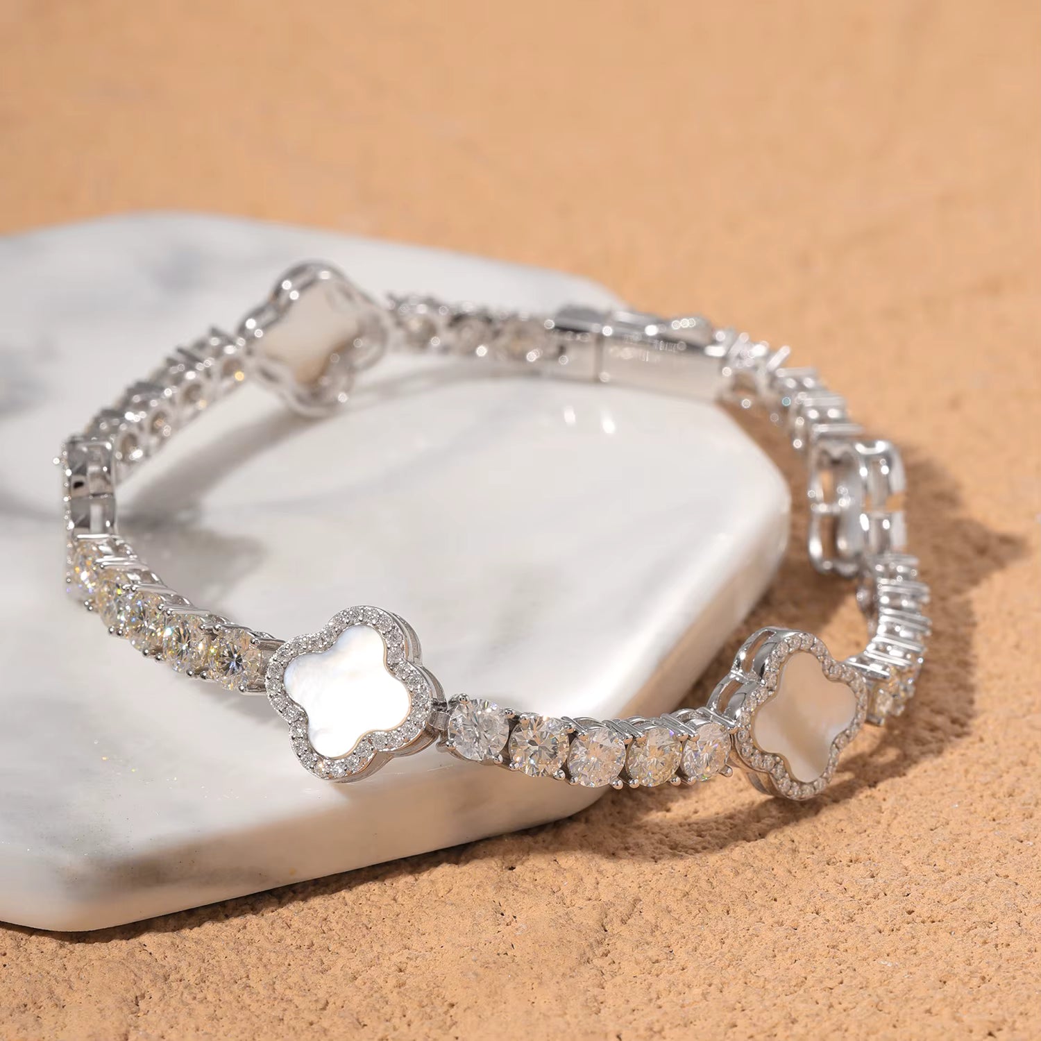 VVS Moissanite & 925 Sterling Silver - Clover Tennis Bracelet